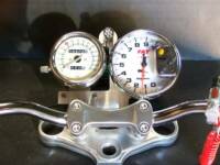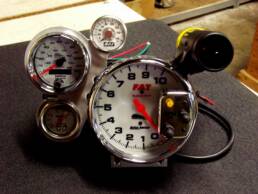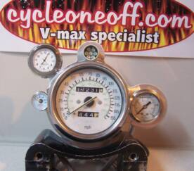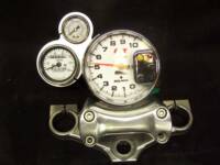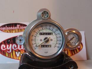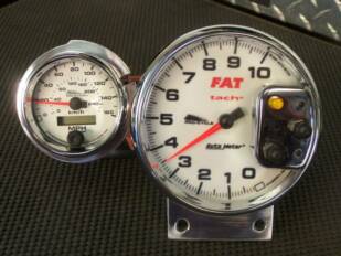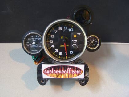 This is our most popular set-up. White faced with shift light tachometer and oil pressure gauge.The speedometer is a mechanical